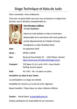 Ne manquez pas le 24 septembre le stage de judo dirigé par Mme Miwako LEBIHAN 7eme dan.